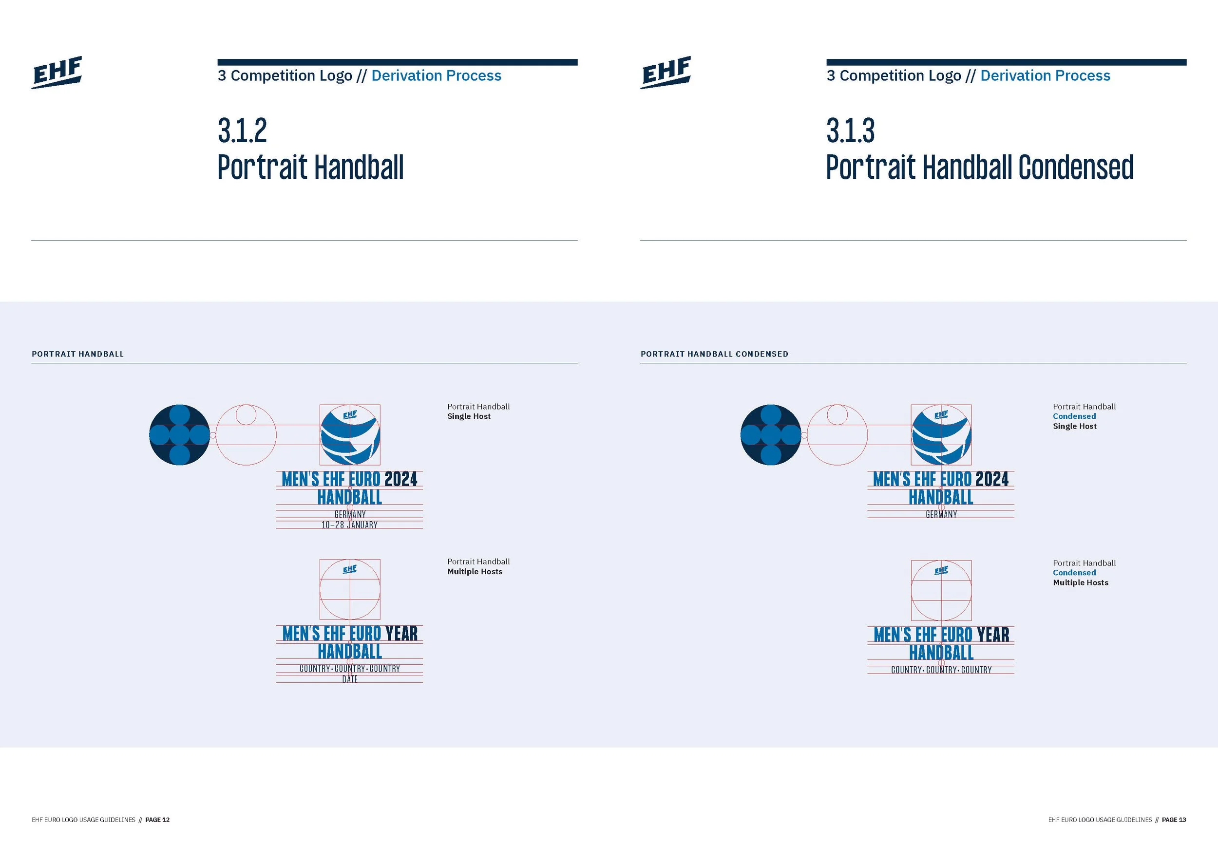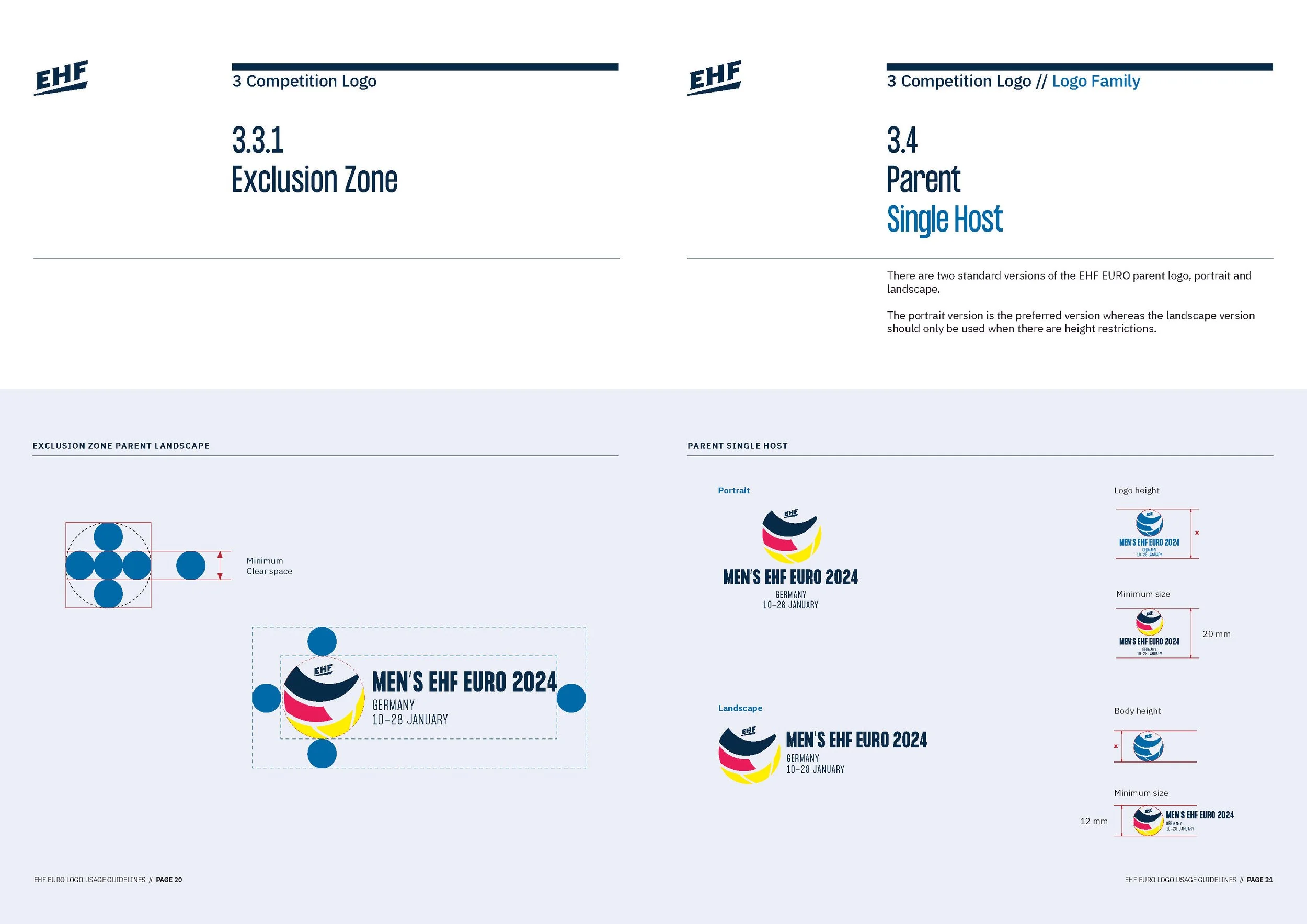 In 2018, we partnered with the European Handball Federation (EHF) to develop a cohesive logo system for EHF EURO competitions, in preparation for the upcoming 2020 EHF European Men's Handball Championship. Drawing inspiration from the handball’s circular form, the design ensures consistency across national team events while allowing host nations to incorporate unique elements. The system is built to accommodate multiple host countries within a unified visual identity.