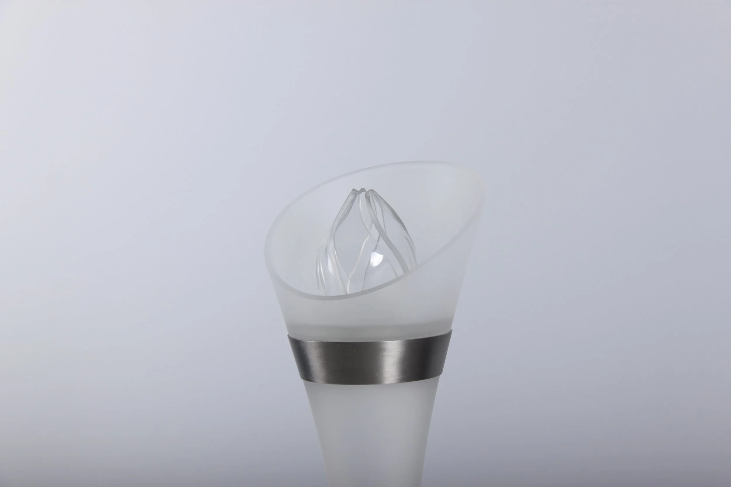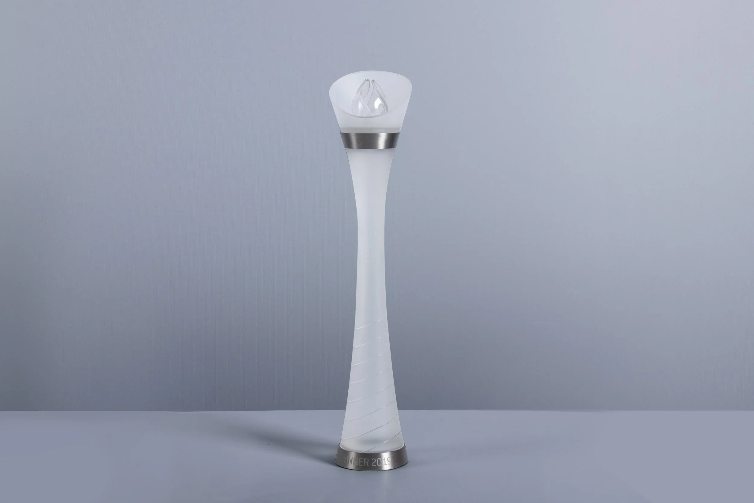 We designed the trophy as a subtle yet powerful symbol of elegance and passion. Together with mould maker HMF, we crafted it from acrylic and polished stainless steel to reflect the precision and quality of the sport. The base references the handle of a tennis racket and the layered structure of grip tape. Open at the top and crowned with a stylized flame that never goes out, it embodies the fire and dedication that fuel the athletes — a lasting tribute to their spirit.
